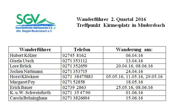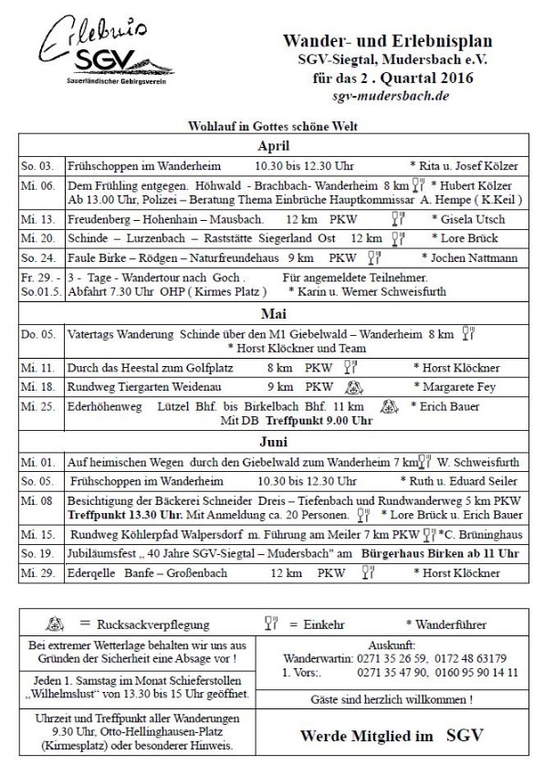 Wander- und Erlebnisplan der SGV Abt. Siegtal-Mudersbach 2016
